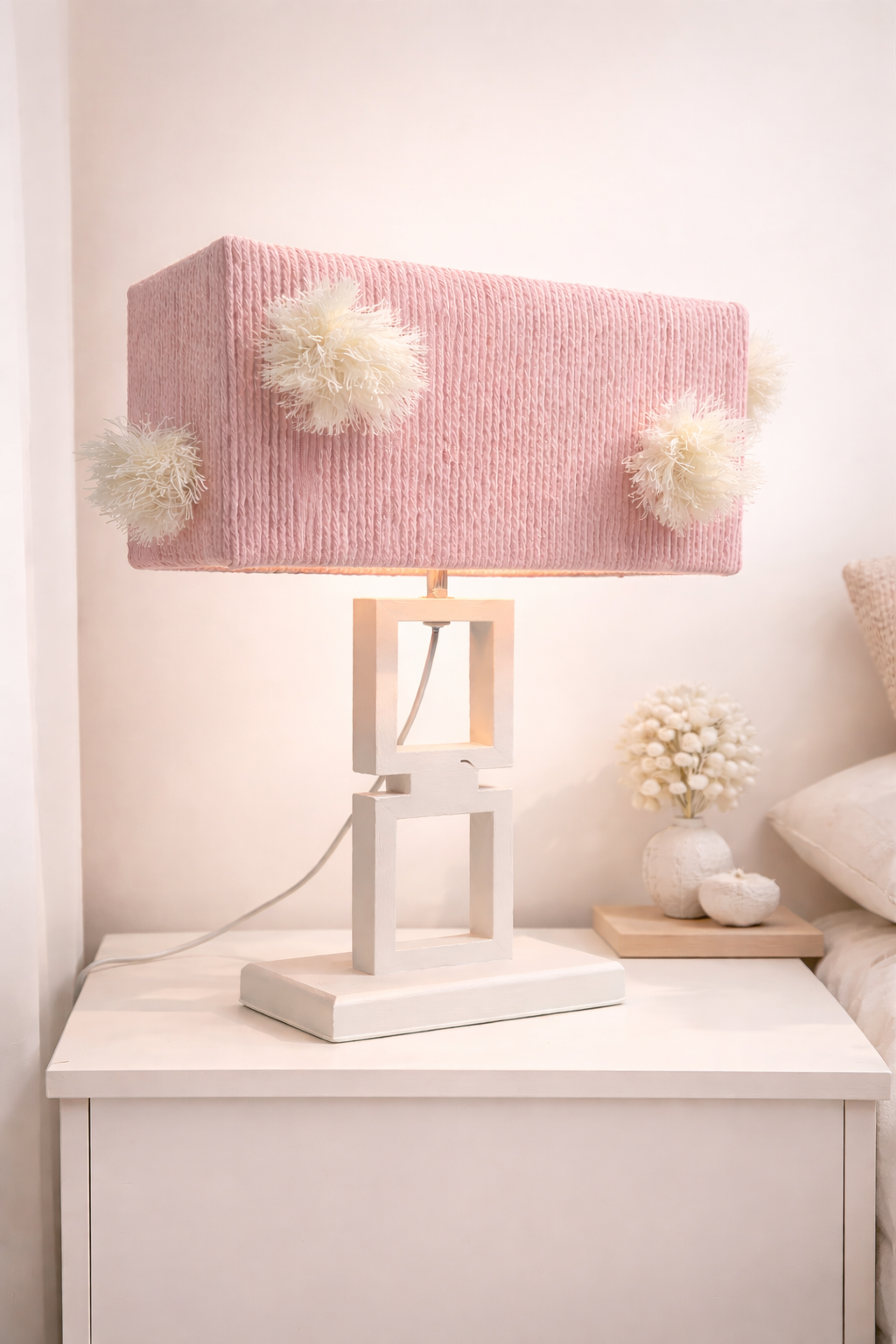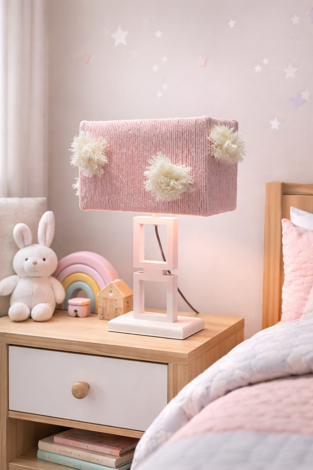 Delicada y cálida, esta lámpara portátil infantil en color rosa está pensada para crear un ambiente dulce y acogedor en el cuarto de los más chicos. Su diseño artesanal y liviano permite moverla fácilmente y colocarla en mesas de luz, estantes o rincones de juego. 🩷🎀